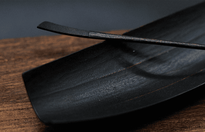 The tea scoop is carved from solid wood chosen for its density, stability, and natural resistance to cracking, making it well suited for repeated daily use. The wood’s grain remains visible and uninterrupted, allowing the material to express itself without ornament. Its natural warmth and weight provide a tactile counterpoint to ceramic and metal tools, grounding the tea preparation process in organic material and touch.