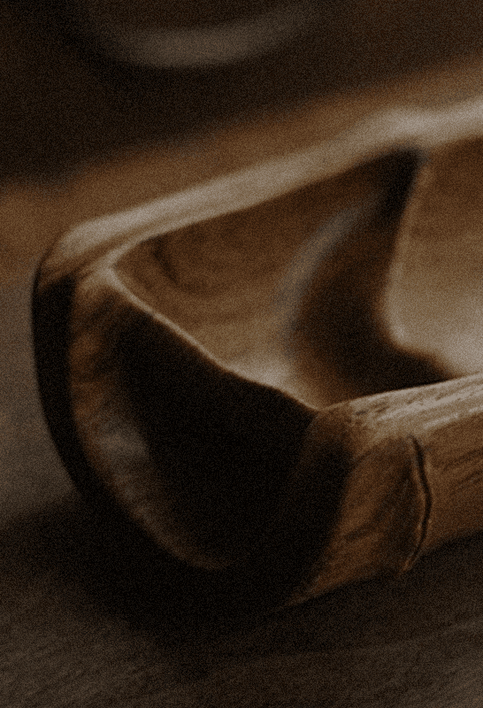 The scoop is carved from dense natural wood, selected for its stability, warmth, and fine grain. The surface is left minimally finished, allowing the texture and tonal variation of the wood to remain visible and tactile. Over time, repeated handling and contact with dry tea leaves gradually deepen the surface, developing a soft patina shaped by touch and use. The material brings an organic counterbalance to ceramic and metal tools within the tea setting.