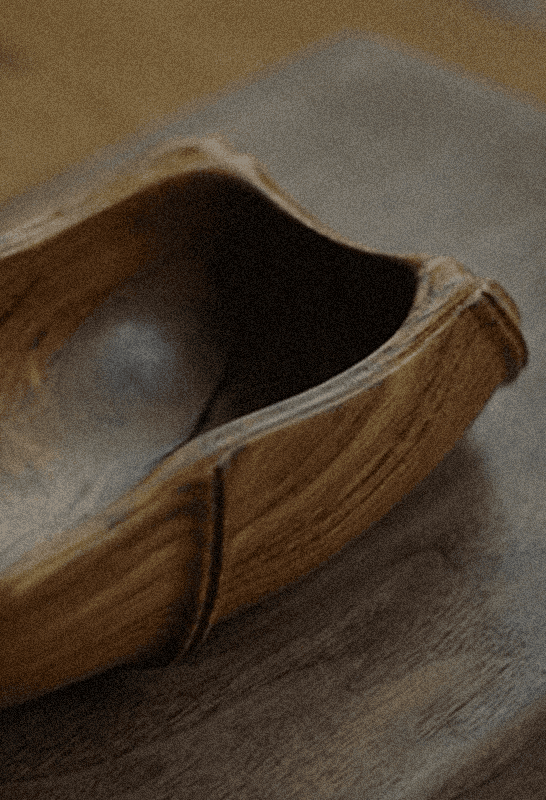 The scoop is carved from dense natural wood, selected for its stability, warmth, and fine grain. The surface is left minimally finished, allowing the texture and tonal variation of the wood to remain visible and tactile. Over time, repeated handling and contact with dry tea leaves gradually deepen the surface, developing a soft patina shaped by touch and use. The material brings an organic counterbalance to ceramic and metal tools within the tea setting.